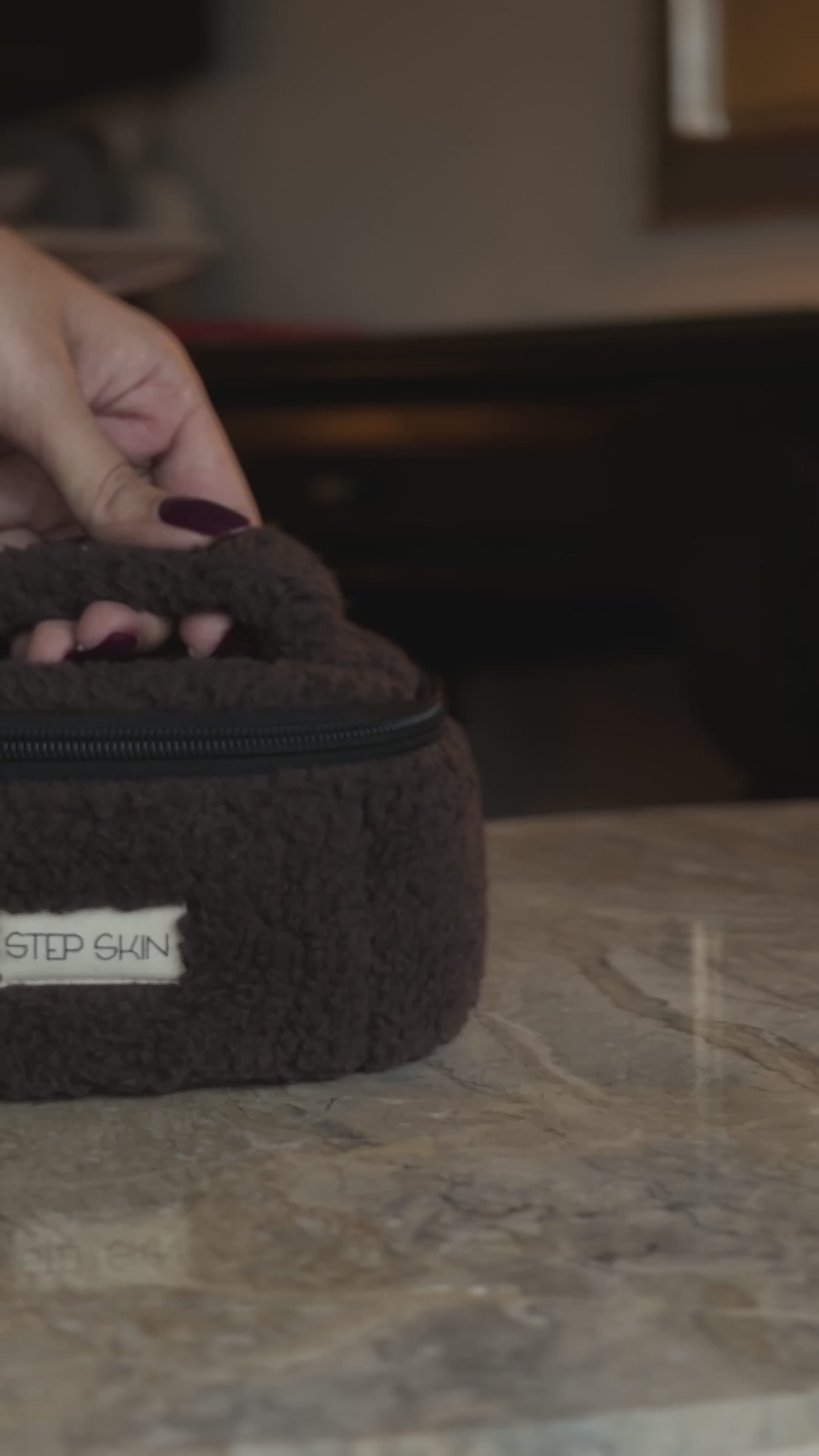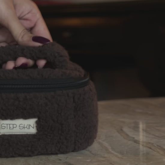 • Mini Cloud Kit – your go-anywhere companion. It has two elastic bands to hold sanitizers or cream bottles upright, dual pockets for small items like AirPods or clips, plus a zip pocket in the lid for jewelry or chargers.