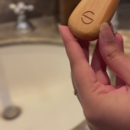 Start on dry skin before showering. Using long, upward strokes, brush from your feet toward your heart to boost circulation and support lymphatic flow. Use lighter, circular motions on sensitive areas like your stomach or chest. Brush each section of your body 2–3 times, always moving toward the heart. After brushing, shower to rinse away exfoliated skin and follow with a nourishing body oil or moisturizer for a silky, radiant finish