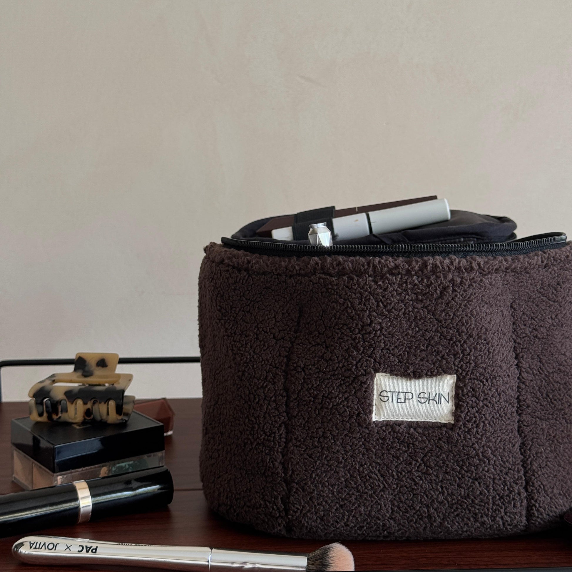 Designed with multiple compartments and pockets, it’s spacious enough to fit all your makeup essentials. A little smaller than the Cloud kit large, the medium is perfect for those holiday essentials. Designed to store makeup but can be used for skin care too. The waterproof interior ensures mess-free packing, while its sleek and durable design keeps everything organized and protected. Perfect for travel , say goodbye to clutter and hello to effortless packing!