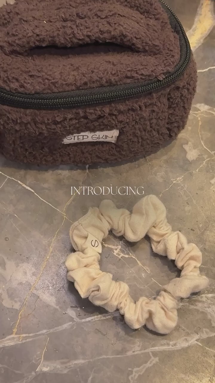 cotton scrunchie : The premium cotton construction promotes optimal breathability while maintaining a secure hold, and the thoughtful design ensures your hair remains free from creasing. Lightweight and elegant, they're the discerning choice for effortless, damage-free styling.